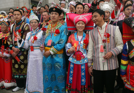 56 newlywed couples from 31 minorities of China hold their mass wedding in