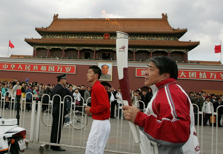 15th Asian Games Doha 2006 Torch Relay past Tiananmen Square in Beijing October