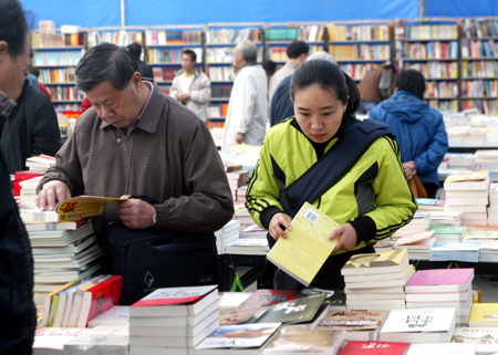 Beijing citizens read books as well as pick up books at Winter Book Fair held form November 10 to 20 in Beijing Ditan Park November 15,2006.In total of more than 150 publishing houses are in for the book fair with over 200,000 kinds of books,audio and video products and softwares on exhibition.[newsphoto]