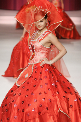 A model presents a creation for a wedding dress design contest 2006 at China Fashion Week in Beijing November 15, 2006. [Reuters]