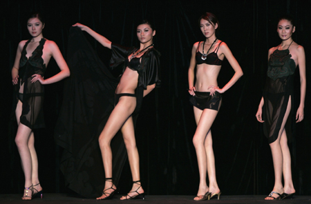 Models present creations during an innovative design contest at China Fashion Week in Beijing November 16, 2006. [Reuters]