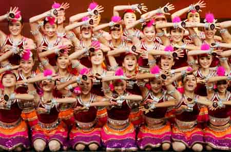 Students from Heart-to-Heart school dance at the ceremony in Beijing December