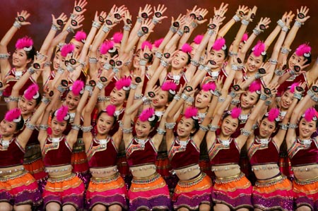 Students from Heart-to-Heart school dance at the ceremony in Beijing December 17,2006. The "Heart-to-Heart Partnership" program, a component of the Beijing 2008 Olympic Games' education program, was launched in Beijing last Sunday, as the day marks the 600-day-countdown to the opening of the Beijing Olympic Games. [newsphoto]