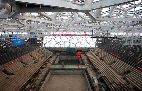 Inside the Water Cube when last cushion was sealed - newsphoto