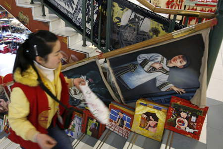 A Chinese customer walks up the stairs in an indoor market in Beijing