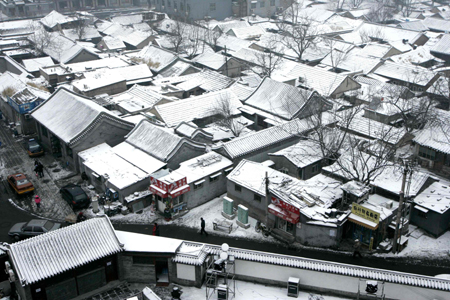 A general view shows central folk houses after heavy snowfall hit Beijing December 31, 2006. [Reuters]