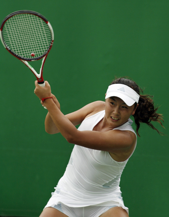 China's Peng Shuai serves to Slovania's Andreja Klepac at the Australian Open tennis tournament in Melbourne January 17, 2007. [Reuters]