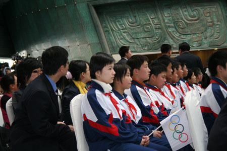 Pupils from primary schools attending the unveiling ceremony of the Beijing 2008 Olympic medals in Captital Museum, March 27, 2007. [chinadaily.com..cn]