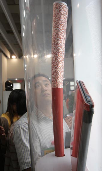 A visitor looks at the Beijing 2008 Olympics torch,'Lucky