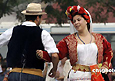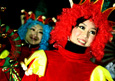 A foreign performer plays with a Chinese visitor at the Beijing Chaoyang Park Temple Fair Feb.24,2007,the last day of Spring Festival holiday in Beijing.[newsphoto]