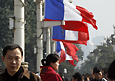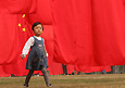 A woman plays with her children among national flags at a park, ahead of the upcoming National Day in Beijing September 30, 2006. China's National Day is celebrated on October 1. [Reuters]
