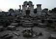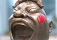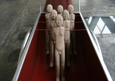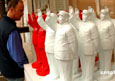A visitor points at a terracotta warrior sculpture by Norwegian artist Marian Heyerdahl at a gallery in Beijing in this March 2, 2007 file photo. From the back, this army of contemporary terracotta warriors looks as forbidding as the ancient battalion that was buried with a warring Chinese emperor to lead in the afterlife. But these all-female soldiers, created by Norwegian artist Marian Heyerdahl and on display in Beijing, carry a completely different message than the famed, original Qin dynasty statues with their pained faces, pregnant bellies and mutilated bodies. [Reuters]
