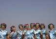 Ethnic minority delegates wave in front of the Great Hall of the People, the venue for the National People's Congress (NPC), before the opening ceremony of NPC in Beijing March 5, 2007. [Reuters]