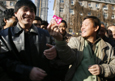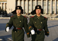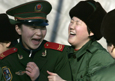 Two Chinese paramilitary soldiers buy Chinese Lunar New Year decorations at a market in Beijing February 14, 2007. China will usher in Chinese Lunar New Year, also known as "Year of the Pig ", on February 18 according to the lunar calendar. [Reuters]