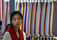 A salesgirl stands alongside the latest style laptop with Beijing 2008 Olympics torch design,'Lucky Cloud' promoted by Lenovo, which is China and global leader in the PC market and Beijing Olympics' partnership, at the 10th Beijing High-TechBeijing International High-Tech Expo in Beijing May 27, 2007.[newsphoto]