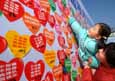 A staff member uses lotus-shaped candles to form the Chinese character for "Good Fortune" at a temple on the outskirts of Beijing February 16, 2007. Chinese around the world are preparing to welcome the Lunar New Year on February 18. [Reuters]