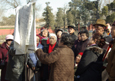 A journalist with Reuters,central, writes the notes while interviewing a retired worker Zhao Guishui,left, of the recently closed down Beijing Coking and Chemical Works. The Media was organized to have a tour in the works in Beijing's southeast suburb,February 27, 2007. The plant has halted its production for the sake of Beijing's air quality,according to an official statement.[chinadaily.com.cn]