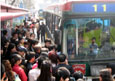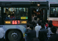 Passengers board a bus during rush hour at a bus stop in Beijing April 18, 2007. Beijing is hoping a 100 billion yuan (US$13 billion) investment in public transport will be enough to keep the traffic flowing at next year's Olympic Games, an official said on Wednesday.[Reuters]