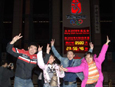 Chinese students jumps for a photo in front of the Olympic countdown clock displaying 500 days to the Olympic Games in Tiananmen Square,Beijing March 26, 2007. A series of events are organized in China's major cities to mark the 500-day countdown to the Beijing Olympics.[Xinhua]
