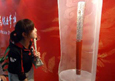 Two visitors watch a sample of the Beijing 2008 Olympic Games torch exhibited in the world art museum at the China Millennium Altar in Beijing, capital of China, May 1, 2007.[Xinhua]