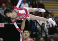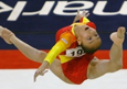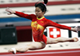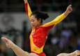 An athlete from the China team performs on the beam as she practices for the Gymnastics World Championships in Aarhus, Denmark, October 13, 2006.[Reuters]