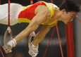 Wang Yan, a 15-year-old Chinese gymnast reacts after she broke her neck in