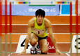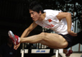 Liu Xiang from China gazes the hurdles before the 60 meters hurdles competition during the track and field meeting at the indoor arena in Dusseldorf, Germany on Tuesday, Feb. 6, 2007. Liu clocked 7.53 seconds and broke the conference record to earn his first title in the 2007 season. [Xinhua]