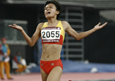 Sun Wenyan of China performs during the synchronised swimming solo technical routine preliminary round at the World Aquatics Championships in Melbourne March 19, 2007.[Reuters]