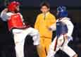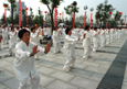 China's Chen Zhong, twice Olympics gold winner and a French player take oath on behalf of all the athletes participating the 2007 Beijing Taekwondo World Championships at the opening ceremony of the tournament in Beijing May 17, 2007. [Xinhua]