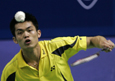 Xie Xingfang of Chinese badminton team returns a shot during men's single match second round against a player of Malaysia at the Germany Open badminton Mar,1st,2007.Xie won the match 2-0 to advance.[Xinhua]