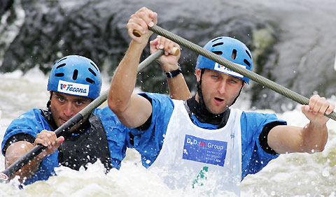 Republic's Jaroslav Volf (R) and Ondrej Stepanek compete to win the C2 men