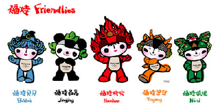 the Five Friendlies will serve as the Official Mascots of Beijing 2008 Olympic
