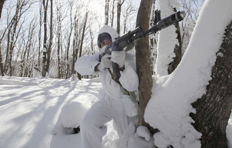 The crowd wows when the first light of fireworks shoots up in the sky. The man smiles, Feb 6, 2012. [Photo/CFP]? |