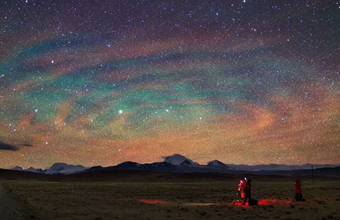 Britain's Princess Anne, right, raises a torch with the Olympic Flame next to Spyros Kapralos, head of the Greek Olympic Committee, during an Olympic flame handover ceremony at the Panathenaic stadium in Athens, May 17, 2012. [Photo/Xinhua] |