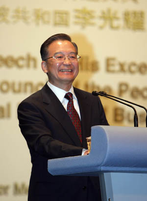 Delivering a speech entitled "Only an Open and Inclusive Nation Can be Strong" at the the National University of Singapore (NUS), Wen said the 17th National Congress of the Communist Party of China convened in October highlighted China's resolve to pursue reform and opening up and build socialism with distinctive Chinese features and its confidence in accomplishing this endeavor. "We stand for free trade and oppose protectionism," he said, "We will speed up changing the mode of trade growth, improve trade mix and strive to reduce trade imbalances." The Chinese premier said China is committed to the basic policy of using foreign capital and will develop innovative ways of using foreign capital, improve its structure and raise its efficiency. "We will continue to follow an independent, gradual and controllable approach in improving the Chinese yuan exchange rate mechanism, increase its flexibility and gradually make the Chinese yuan convertible under the capital account," he said. "We take product quality and food safety seriously and work to uphold the interests of both Chinese and foreign consumers," he said. He added, "We comply with international standards in production and have enhanced law enforcement of and supervision over product testing and inspection." China is fully committed to protecting intellectual property rights (IPR) and has made a lot of effective efforts in this area, he said, adding that the country stands ready to deepen cooperation in IPR protection with other countries. On the issue of climate change, Wen said China is ready to work with all other countries to jointly tackle climate change within the framework of the UN Framework Convention on Climate Change and the Kyoto Protocol and in accordance with the principle of "common but differentiated responsibilities". "We have put in place the legal framework governing opening up and will continue to improve it to place foreign investment activities in China under the rule of law and protect the lawful rights and interests of foreign investors," said the premier. Wen arrived in Singapore on Sunday afternoon for an official visit to the country at the invitation of his Singaporean counterpart Lee Hsien Loong. It is the first visit by a Chinese premier to Singapore in eight years. ![]() ![]()