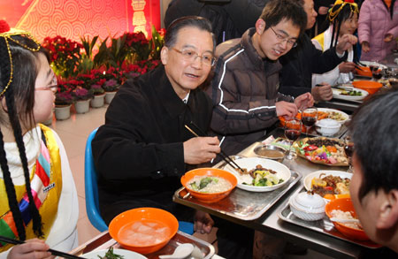 Wen said: "We lost much in the weather disaster. For instance, some mandarins (oranges) died and trees were toppled. But we also got many things, such as courage, will and the ability to overcome difficulties. Amid the disaster, relations between officials and the masses strengthened and people became more united." Learning that electricity was expected to be restored at about 8 p.m. Wednesday in the city, Wen said that he felt reassured. He showed more concern about agricultural restoration, urging local farmers to prepare seeds and fertilizer for the spring planting season. Then Wen visited Jiangxi University of Finance and Economics, where he had Lunar New Year dinner with students who couldn't go home for holiday. The trip meant that it was the fifth Lunar New Year's Eve in a row on which Wen didn't go home but spend the holiday with the public. Wen visited southwestern Guizhou Province on Tuesday before he came to Jiangxi. His visit to Guizhou and Jiangxi provinces was his third to disaster areas in the past nine days.