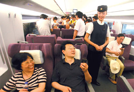 The world's fastest inter-city train covers the 120 km in just 29 minutes, reaching a peak of 350 km/h. If you like to read a book or gaze at the passing countryside, this isn't for you. If, on the other hand, you want to be whisked from A to B quickly, cheaply and comfortably, China's new trains are heaven-sent. For some, it might seem predictable, even mundane. A booming country, money to burn, flexing its new economic muscle on the back of an acclaimed Olympic Games. Not so 65-year-old Yuan Yishan. He appreciates the good times because he still remembers the bad. The accountant from Tianjin has been traveling to and from Beijing for about 45 years. When we met, he had zipped up to Beijing South first thing, completed his work inside three hours and by lunchtime was waiting for his trip home to south Tianjin to prepare dinner for his grandson. "Forty years ago, it was impossible to travel between the two cities in a day and the slow train made the short trip uncomfortable," he said, looking utterly contented. ![]() "My first train to Beijing was in the early 1960s. It was a slow steam train and took about four and a half hours. We had to sit on hard wooden benches and my back was aching all over when I got off at the old Yongdingmen Station." No wonder, then, that when Beijing South made its grand debut on the eve of the Olympics, he was an immediate fan. "It feels like flying on land!" he beamed. "One day I noticed the speed reached 320 km/h. Apart from the speed, the big soft chair and free mineral water made the journey comfortable and relaxed. "Now there are trains to and from Beijing every 15 minutes and there are restaurants and coffee shops in the station hall. I really enjoy these trips." The second-class ticket for 59 yuan ($8.3) also went down well. For Australian businessman Charles Brent, the bullet train marks an end to ghastly road trips. "I used to drive back and forth," said the investment specialist, who paid an extra 10 yuan for a wee bit more space and comfort in the first-class carriage. "It used to take three and a half hours and it was quite dangerous. Invariably I would see an accident, often a fatal one. It was so bad I wouldn't even consider doing it at night. Trucks would stop in the middle of the road and put you at risk of decapitating yourself if you drove into the back of them. Other drivers would stop to change wheels when you least expected it." Brent believes this is just the start. "I reckon China's railway network will lead the world in design and efficiency, both for passengers and freight, within 15 years," he said. "I have dramatically increased my use of trains in the last two years - they have become so much faster, safer and more pleasant than driving." Price and speed were the motivation for Cai Meijuan, 34. Cai, a native of Qingdao, landed a sales job in Beijing in 2001 and ever since has been returning home twice a year to visit her parents. She has recently had to make the trip several times and has switched to the new high-speed trains. "A one-way flight cost me 700 yuan ($100) and the new train is only 200 ($29)," she said. "The new train to Qingdao takes about five hours, twice as quick as the old one. The flight time might be quicker but you have to arrive at the airport at least an hour before to check in and it takes an extra hour to get home from Qingdao Airport, so the train makes a lot of sense for me." The only complaint Cai had was access to the rest of Beijing from the new train station. She is relishing the day the new subway lines are connected, slicing even more money and time off her journey. Australian factory owner Bill McGuinness planned to spend as much of his three-week business trip to China on the new trains. "I'd use them every day of the week," he said as he prepared to start his four-hour 30-minute journey to Jinan. "It's the best way to see the country."