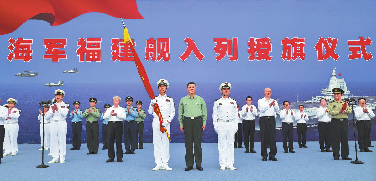 Xi, who is also general secretary of the Communist Party of China Central Committee and chairman of the Central Military Commission, took part in the commissioning ceremony of the supercarrier, named after the eastern coastal province of Fujian, at a naval base in Sanya, Hainan province. He personally handed a PLA flag to its captain and political commissar.