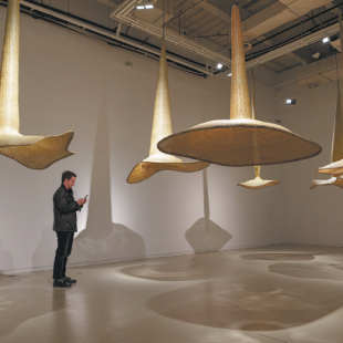 The 15th Shanghai Biennale, under the theme "Does the Flower Hear the Bee?", has transformed the Power Station of Art into an immersive garden, where 170,000 yellow blossoms are suspended in the air in the huge central lobby.
