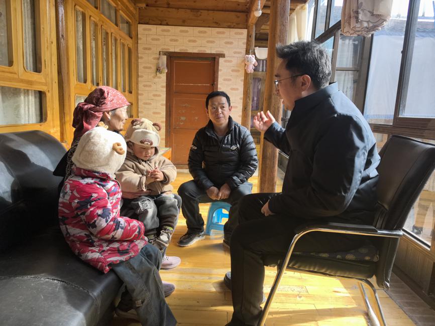 Aid officials visit the home of Tibetan villagers. [Photo by Yan Dongjie/chinadaily.com.cn]