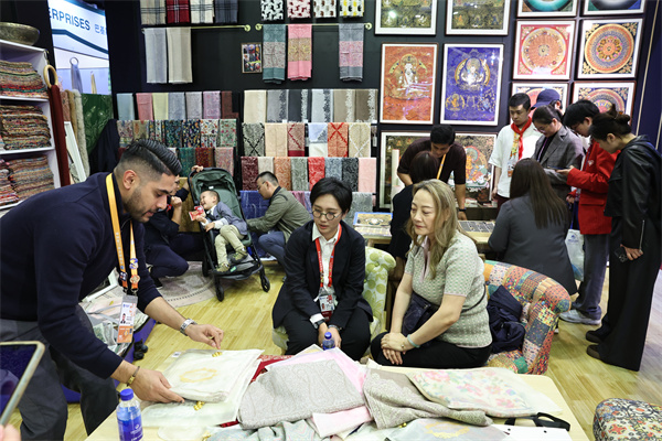 At a special pavilion celebrating the friendship between Lhasa, capital city of Xizang autonomous region, and Kathmandu of Nepal, Shrestha showcased his exquisite handmade family products related to religious ceremonies at the CIIE.