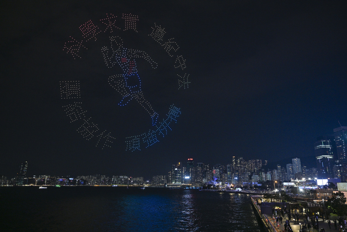 Drone light show celebrating spirit of sports staged in Hong Kong