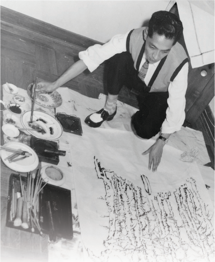 A photo of young Lui Shoukwan, painting in his Hong Kong studio. CHINA DAILY