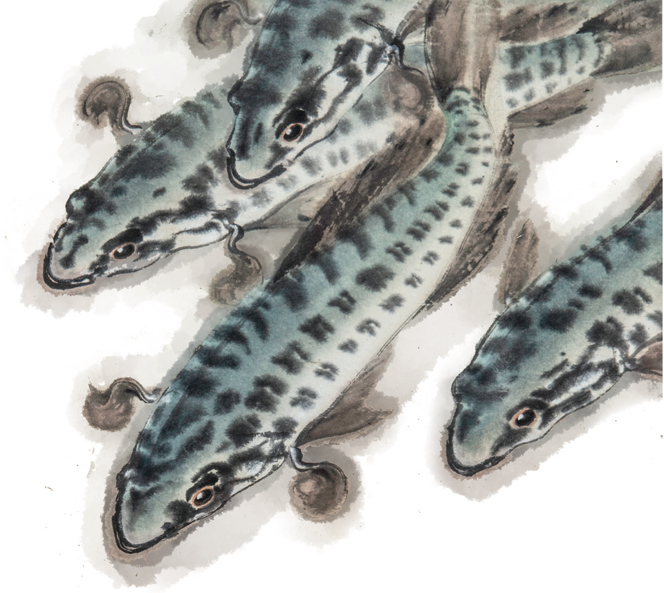 Detail from Lui's painting Snakehead (1952). The accompanying inscription (not in the image) urges artists to be humble about their skills. CHINA DAILY