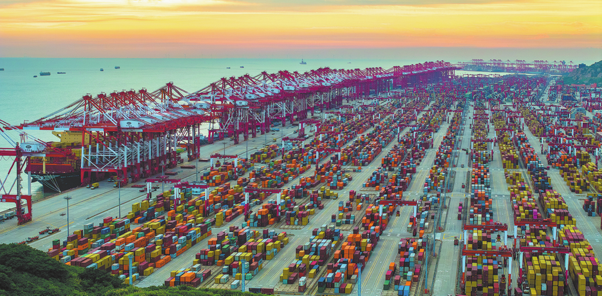 A panoramic view of a container terminal at the Shanghai Yangshan Deep Water Port on July 6. JI HAIXIN/FOR CHINA DAILY