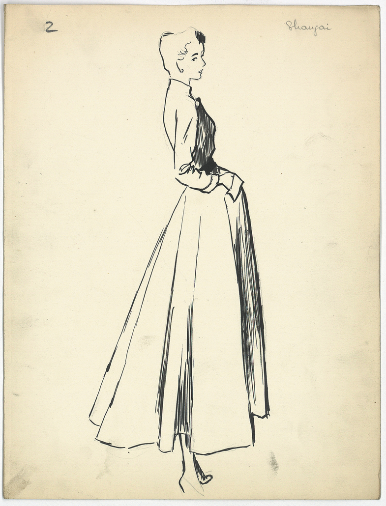 Three sketches by Christian Dior in 1948: Shanghai, Chine and Pekin. CHINA DAILY