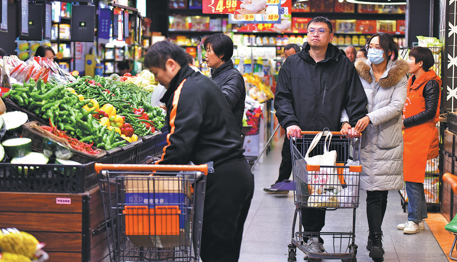Shoppers buy vegetables at a supermarket in Fuyang, Anhui province. LU QIJIAN/FOR CHINA DAILY
