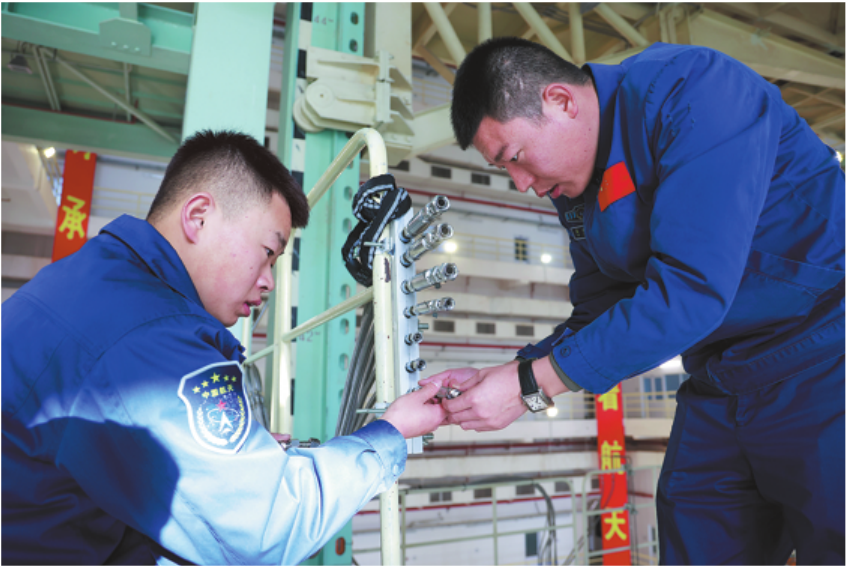 Technicians clean gas pipe valves at the Jiuquan Satellite Launch Center on Nov 9. LI MINGTANG/XINHUA
