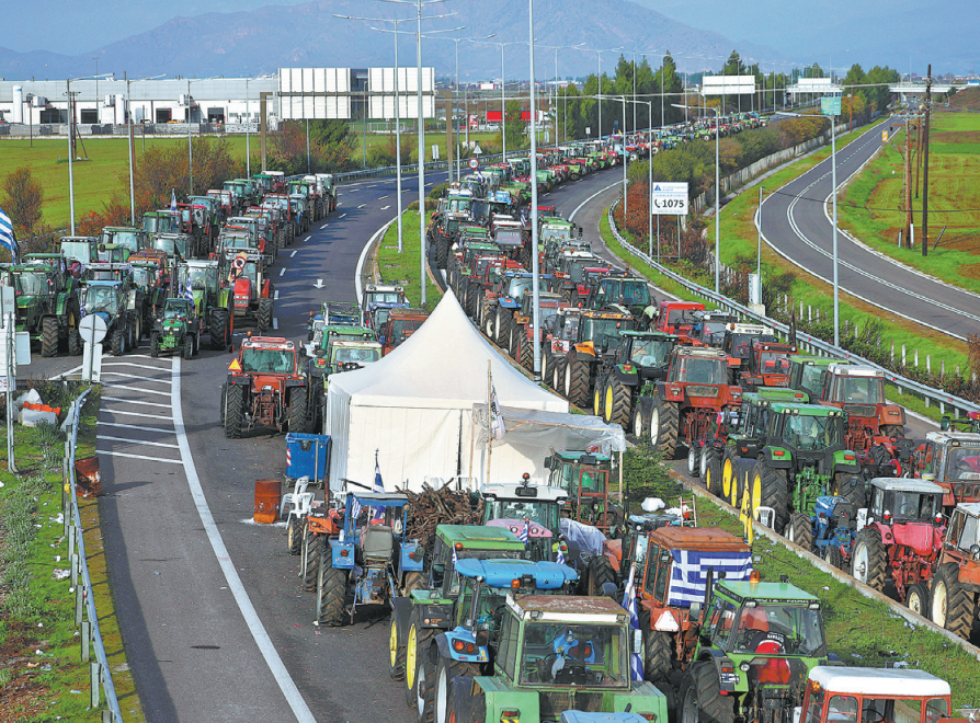 Greek farmers, protesting over the delayed payment of European Union subsidies, block a national highway intersection near the city of Larissa on Wednesday. LOUISA GOULIAMAKI/REUTERS