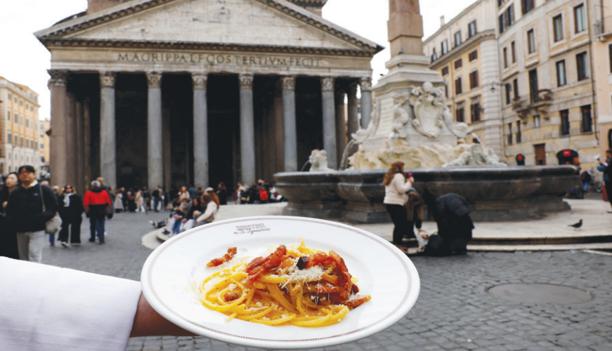 A waiter displays a plate of pasta in front of the Pantheon in Rome, Italy last week, as Italian cuisine awaited a UNESCO decision that could recognize it as an Intangible Cultural Heritage of Humanity. REMO CASILLI/REUTERS